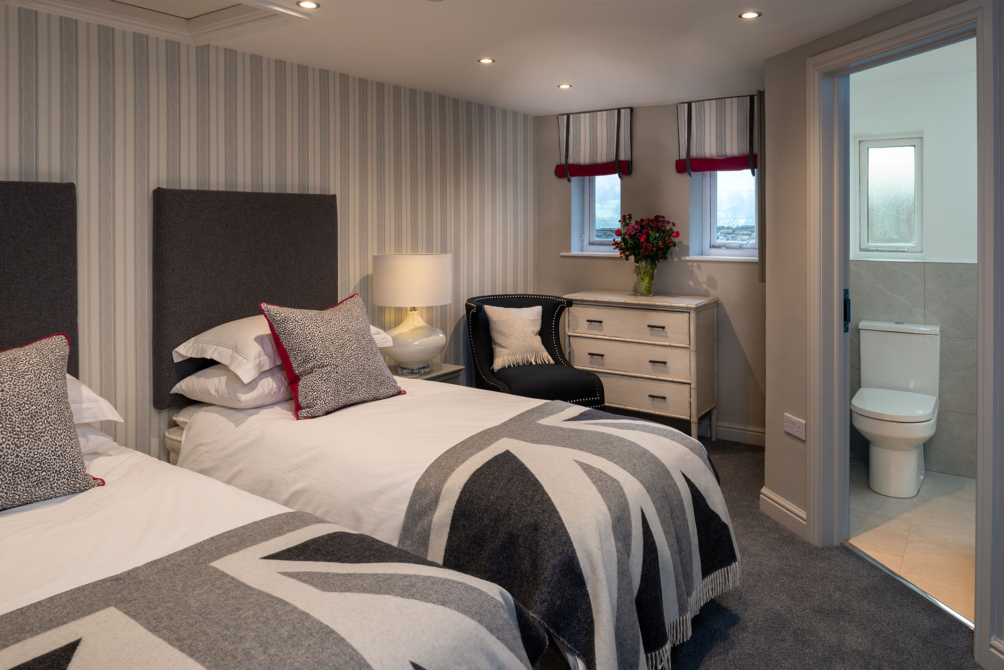 The Calders room is located in the Annex on the ground floor. It’s a north-facing room featuring an en-suite wet room and twin beds.